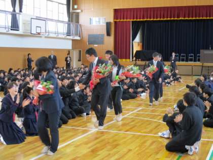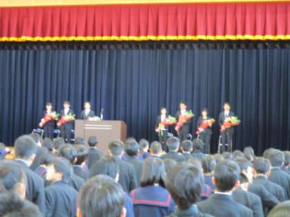 この3月に谷川中学校を去られた先生方からご挨拶をいただきました。