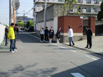 暖かい朝です。今日は3年が全国学力・学習状況調査があり、1,2年生は大東市共通到達度確認テストがあります。今日も地域の方々が挨拶に来ていただいています。