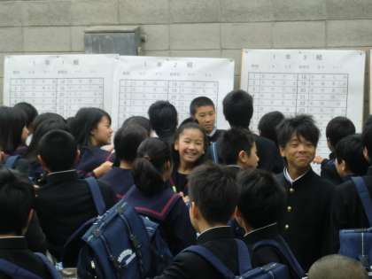 8時30分、新入生クラス分け掲示です。