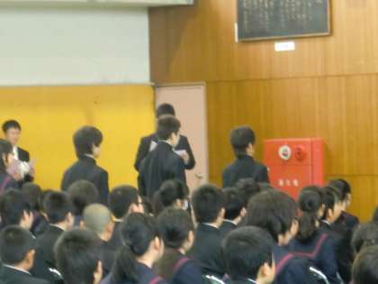「校歌紹介」で活躍してくれた生徒会役員、吹奏楽部の皆さん、どうもありがとう。