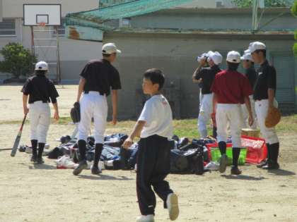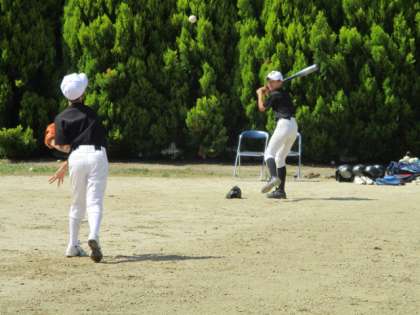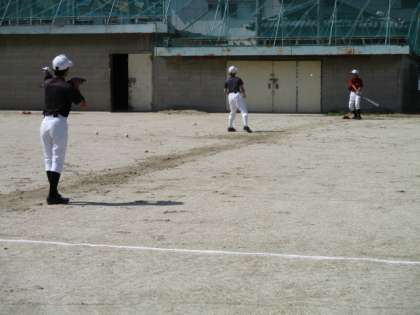 野球部の練習風景です。練習前にグランド整備をしてから行っています。