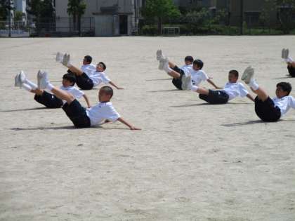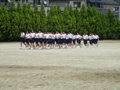 男子体育は暑いですが、大きな声を出してランニングをしていました。