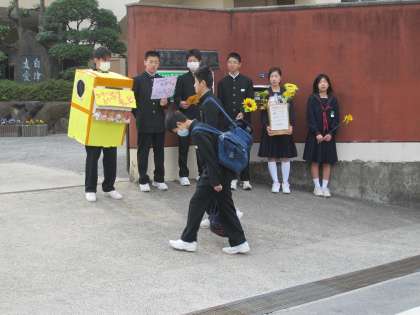 生徒会役員があいさつ運動とあわせて、エコキャップ回収も行ってくれています。