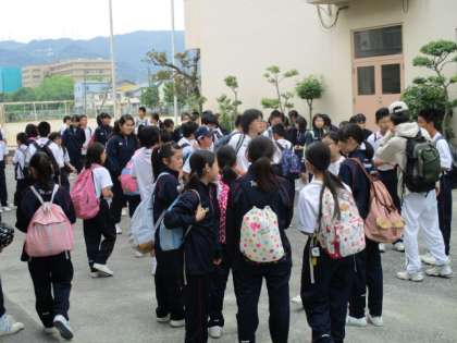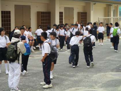 今日は1年生が星田の府民の森に校外学習へ行ってきます。そろそろ集合の声がかかり始めています。