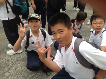一年生が校外学習に出発します。とても元気です!