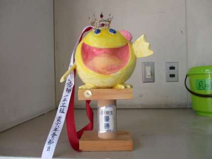 校外学習中に行った冒険教育で3組が優勝して飾られてありました。トロフィーの作成者は学年主任の窪先生です。