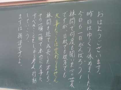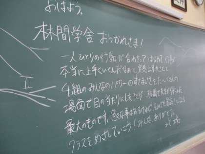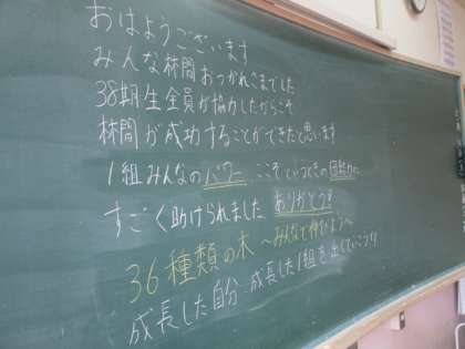 2年生の各クラスの黒板に担任の先生から、心温まる素敵なメッセージが書かれていました。