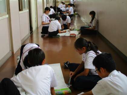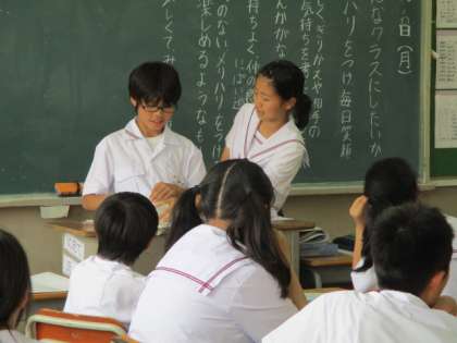 1年生は生徒総会に向けて、2年生は林間学舎の壁新聞づくり、3年生は修学旅行の取り組みを行っています。