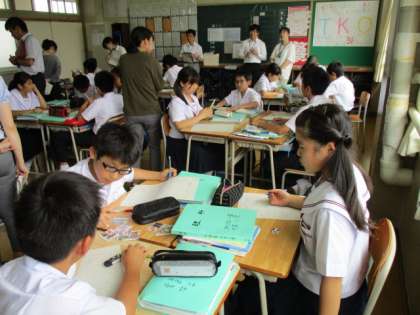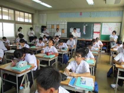 5限に教育実習に来ている先生の研究授業がありました。クラスは1年1組の理科でした。