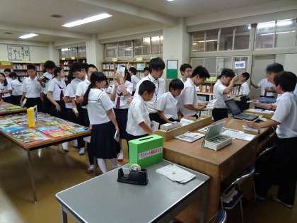 これまで、1日あたり30〜40冊の本が図書室では借りられています。この日は昼休みだけで普段の倍以上になる82冊もの本が借りられました。