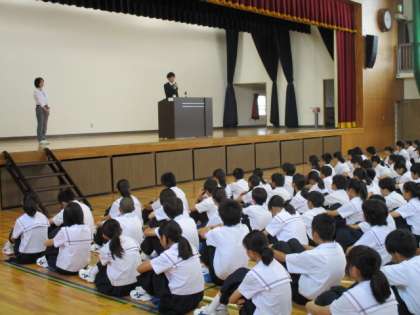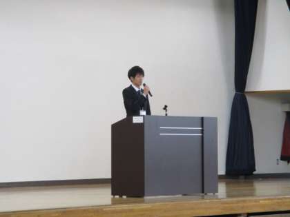今日は生徒朝礼の日です。今日で教育実習が終わるお二人の先生からご挨拶をいただきました。