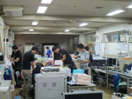 修学旅行出発です。雨の出発なので教員は朝、6時前から準備をしています。