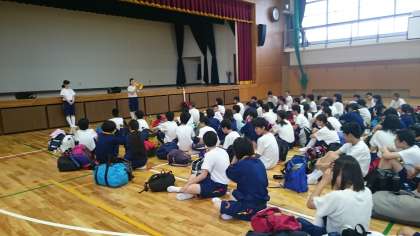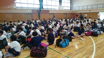 体育館で出発式です。