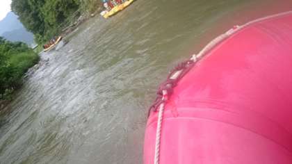 ラフティング、途中には流れの穏やかなところもあります。