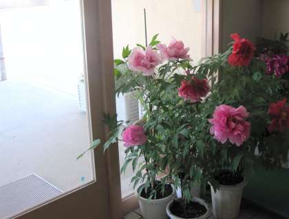 (写真は玄関で美しく咲いている牡丹です。)