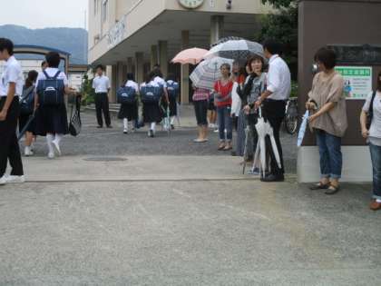今日は久しぶりに小雨が降る中で一日が始まりました。1週間、あいさつ運動に来ていただきました保護者の皆様に本当に感謝です。朝から地域・保護者の方々・生徒会役員の「おはようございます」という気持ちのいい声で学校生活がスタートできることに幸せを感じます。