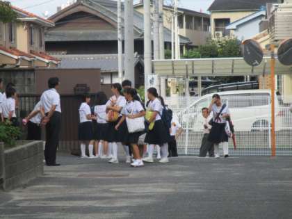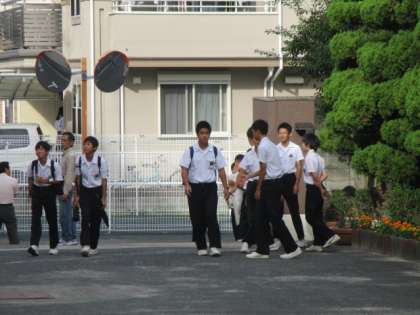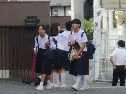 朝の校門付近の様子です。台風の影響により大東市に大雨等の注意報がでています。生徒の安全確保を考え、放課後の部活動をはじめ生徒の会議を止めて下校させます。夜開かれるPTA会議も行いません。
