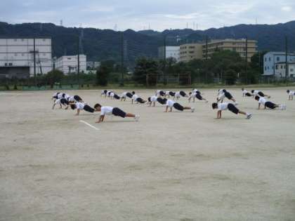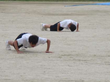 1年男子の体育です。元気な声が校長室まで聞こえてきました。