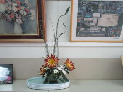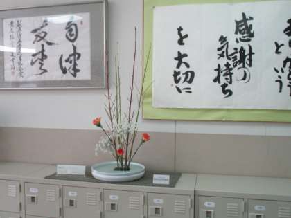 玄関のお花を見るのが楽しみです。谷川中学校に来られたら、ぜひ美しいお花を見てください。