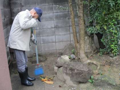 今日も朝早くから学校整備員さんが細かいところまで清掃していただいています。