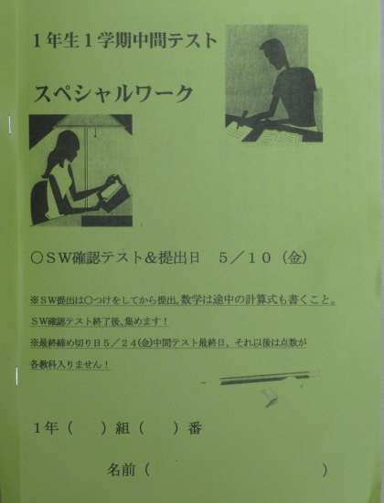 1年生で配付されている「スペシャルワーク」。