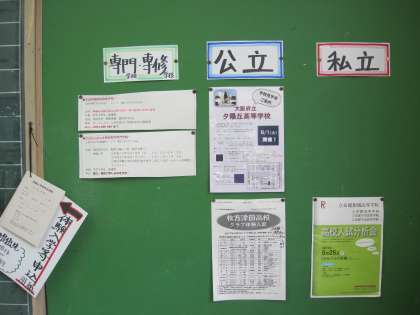 3年生各教室に「オープンスクール」「高校説明会」案内の掲示がされています。