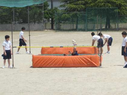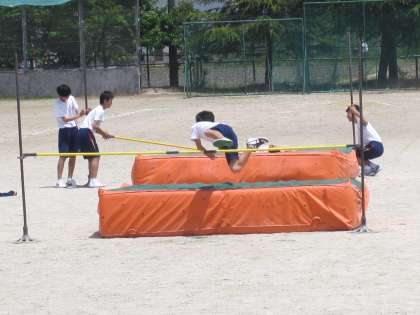 気温が上がる中、グラウンドでは2年生男子が体育の授業で走り高跳びに挑戦しています。