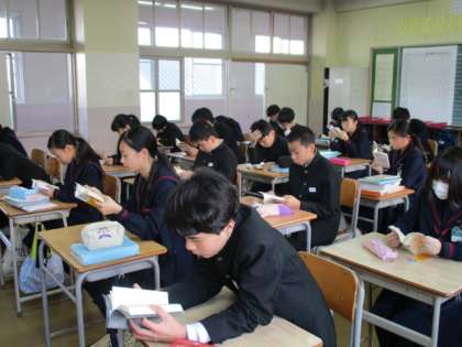 今日から朝読が再開されました。インフルエンザ対策として、当たり前に換気を行っています。