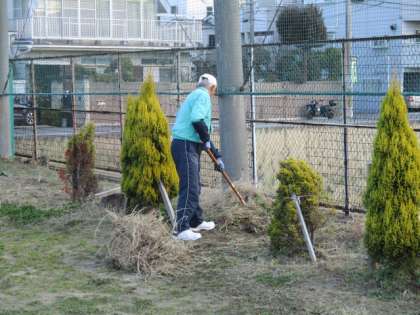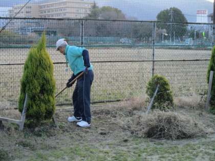 冷たく寒い中、学校整備員さんがグランド東側の草取りを黙々としていただいています。本当に感謝の気持ちでいっぱいです。