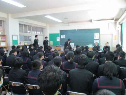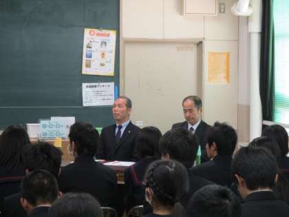 5限(1,2組)、6限(3,4組)に面接の心構えを学んでいます。講師は太成学院大学高等学校から西川潔先生、中央学園高等専修学校から郷原康夫先生をお招きしています。