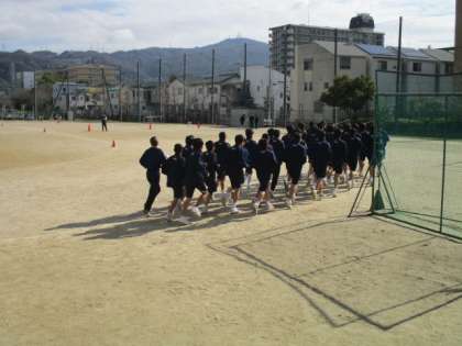 ランニング風景です。寒い中、大きな声を出しながら列を崩さず走る姿は素晴らしいです。