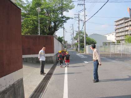 谷中生はもちろん、集団登校をしている小学生にも「車に気をつけて」と声をかけたり、学校前を通過される大人や高校生全員にあいさつをされています。