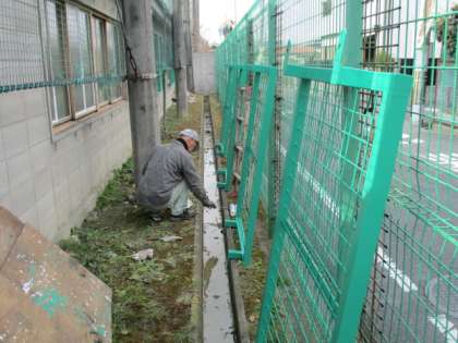 運動場にある体育倉庫の北側窓が割れていた状態でしたが、教育委員会のお取りはからいで新しくガラスを入れていただき、フェンスも新しくしていただきました。業者さんが