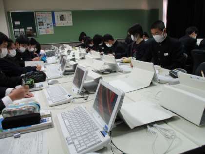 2年生も全員マスクを着用して技術の授業に取り組んでいます。