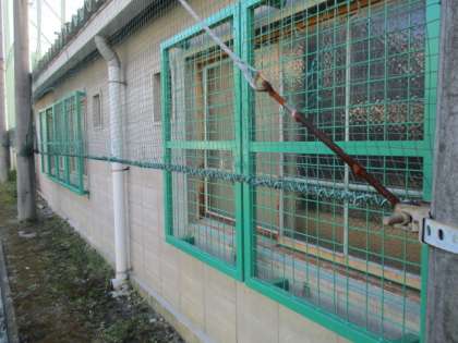 寒い中、二日間かけて業者さんに体育倉庫北側の窓のフェンス枠をつけていただきました。本当に市教育委員会と業者さんに感謝です。
