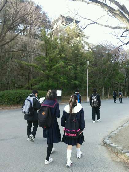 午前中は、大阪城のまわりを班ごとに巡ります