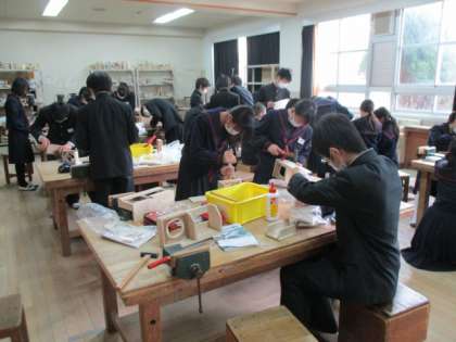 1年生の国語と技術の授業、そして3年生の社会の授業風景です。