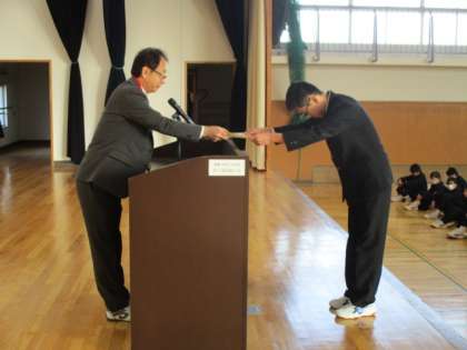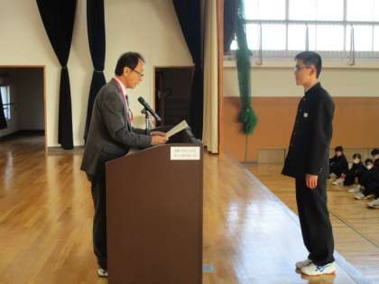 今日の始まりは生徒朝礼からです。数学検定の表彰と私からはあいさつ、目標設定の話しをしました。