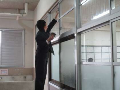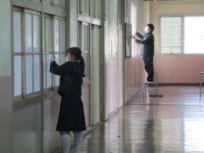 校内清掃を募集し、生徒約20名がボランティア精神で寒い中、窓ふきを中心に取り組んでくれています。