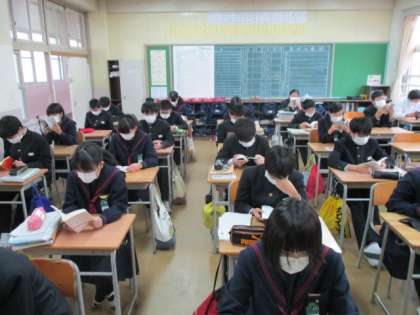 2年生がインフルエンザ、体調不良が心配です。3階で検温、換気、全員マスク着用を心がけています。