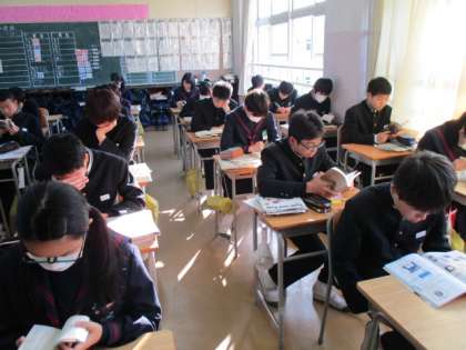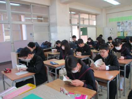 インフルエンザでのお休みする生徒もいなく、落ち着いて朝読に取り組んでいます。