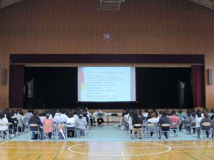 進路指導主事・柗本教諭から評価、公立高校受検制度、進路スケジュール、進路状況などについて説明がありました。