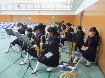 今日は谷川中学校第40回入学式です。吹奏楽部が7時半から入学式のために練習を行ってくれています。