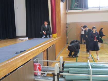吹奏楽部が会場の片付けを手伝ってくれました。