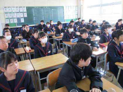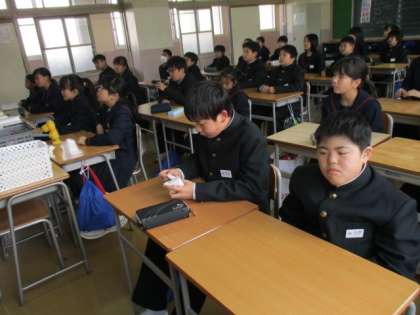 朝読後は朝学活です1年3,4組の様子です。