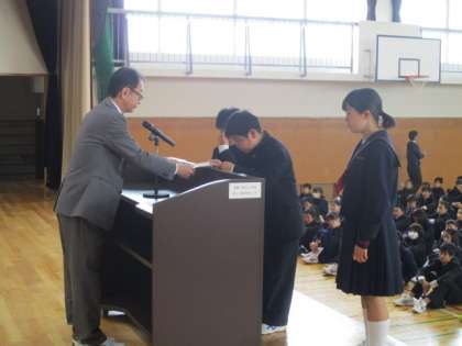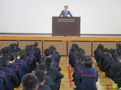 生徒委員認証式と私からの話は地域に迷惑をかけないことと努力する能力の話しをしました。その後、生徒指導主事の先生から話しがありました。