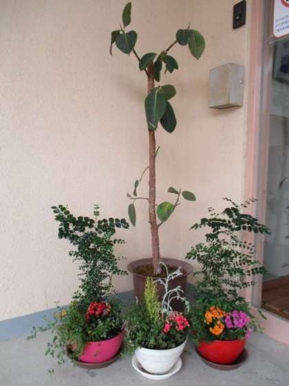 校務員さんが玄関を上手に花でコーディネートしてくれています。