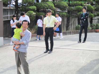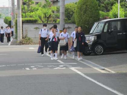 とても気持ちの朝です。近所の子どもさんもあいさつ運動に参加しています。