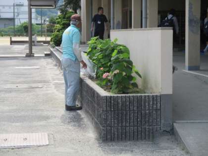 学校整備員さんが朝8時前から掃除等をしてくれて、学校がさらに綺麗になっていきます。