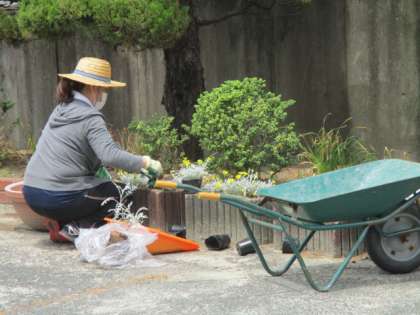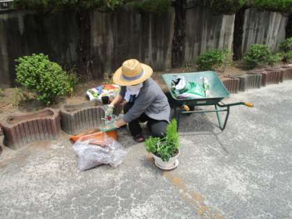 暑さに強い花を校務員さんが選んで校門付近に植えてくれています。